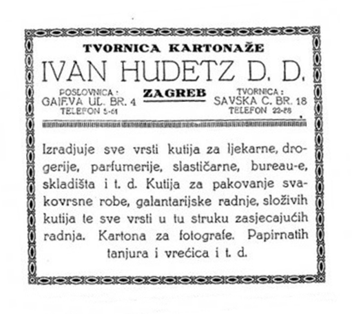 Kartonaža Hudetz obiteljska je tvrtka - obrt, osnovana 1862. godine. Tvrtka postoji 150 godina i vođena je od strane 5 generacija obitelji Hudetz. Danas tvrtku vodi Tanja Hudetz, mlada poduzetnica, prva žena u obitelji koja je preuzela poslovanje.